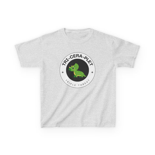 Tri-Cera-Plet Young Kids T-Shirt - Fun Dino Graphic T-Shirt for Triplets