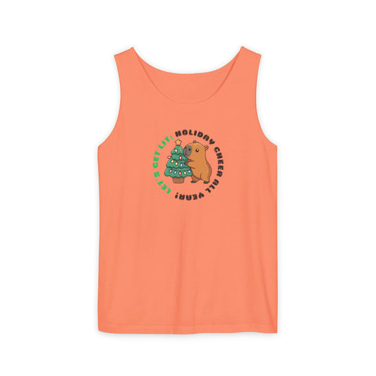 Unisex Holiday Cheer Tank Top — "Get Lit" Christmas Tree & Capybara Graphic
