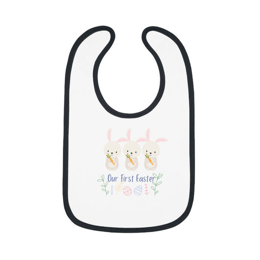 Our First Easter Triplet Baby Bib - Adorable Contrast Trim Jersey Bib for Special Celebrations