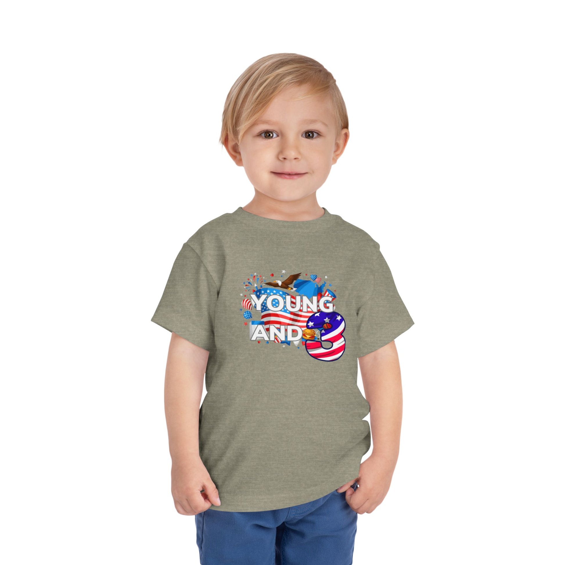 3rd Birthday- "Young and Free" USA Toddler Tee – Cute Kids' Unisex Shirt with Patriotic Design