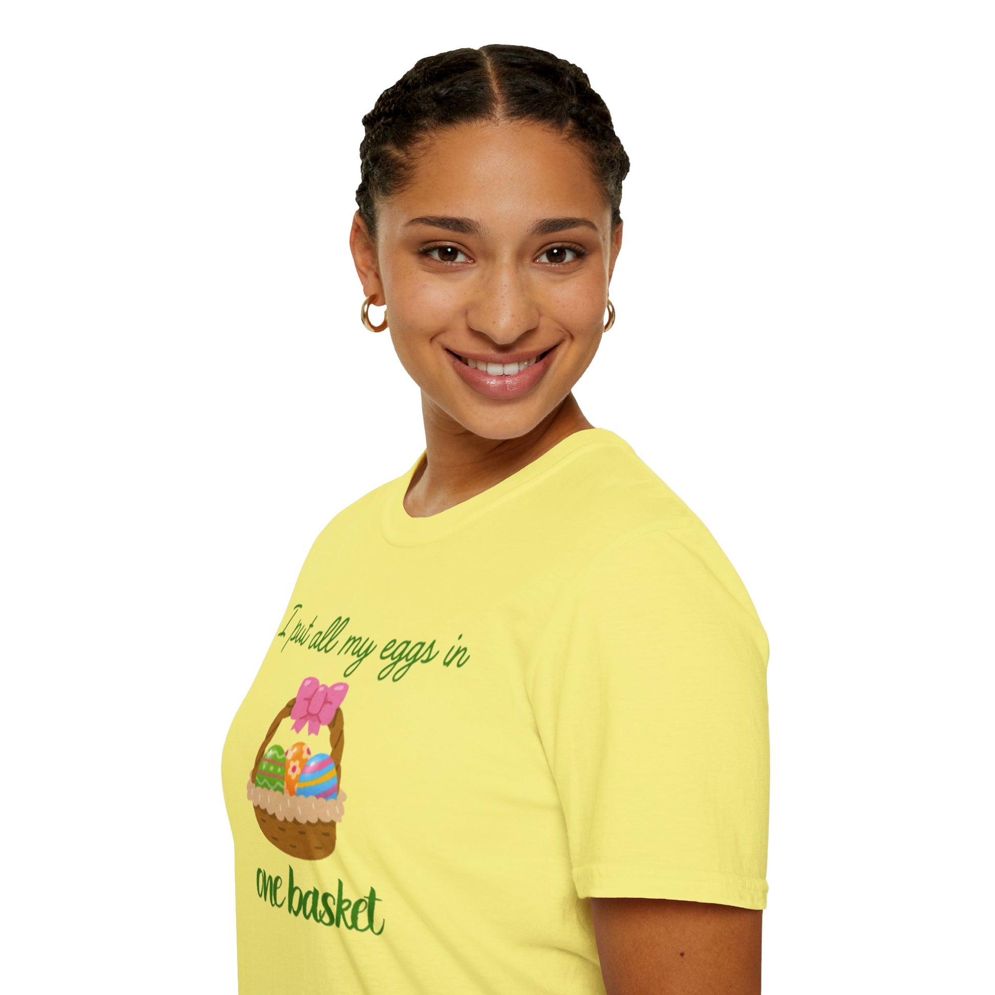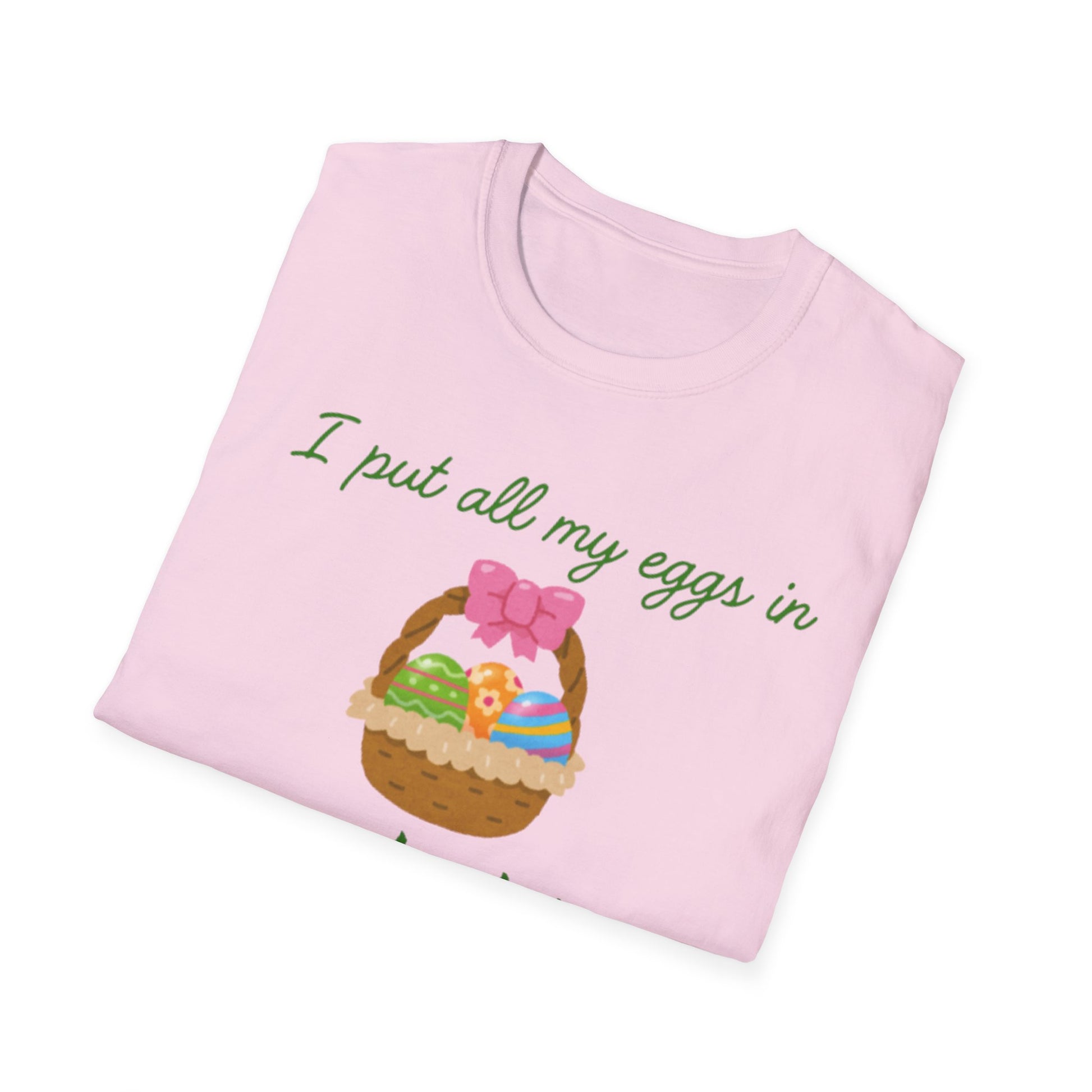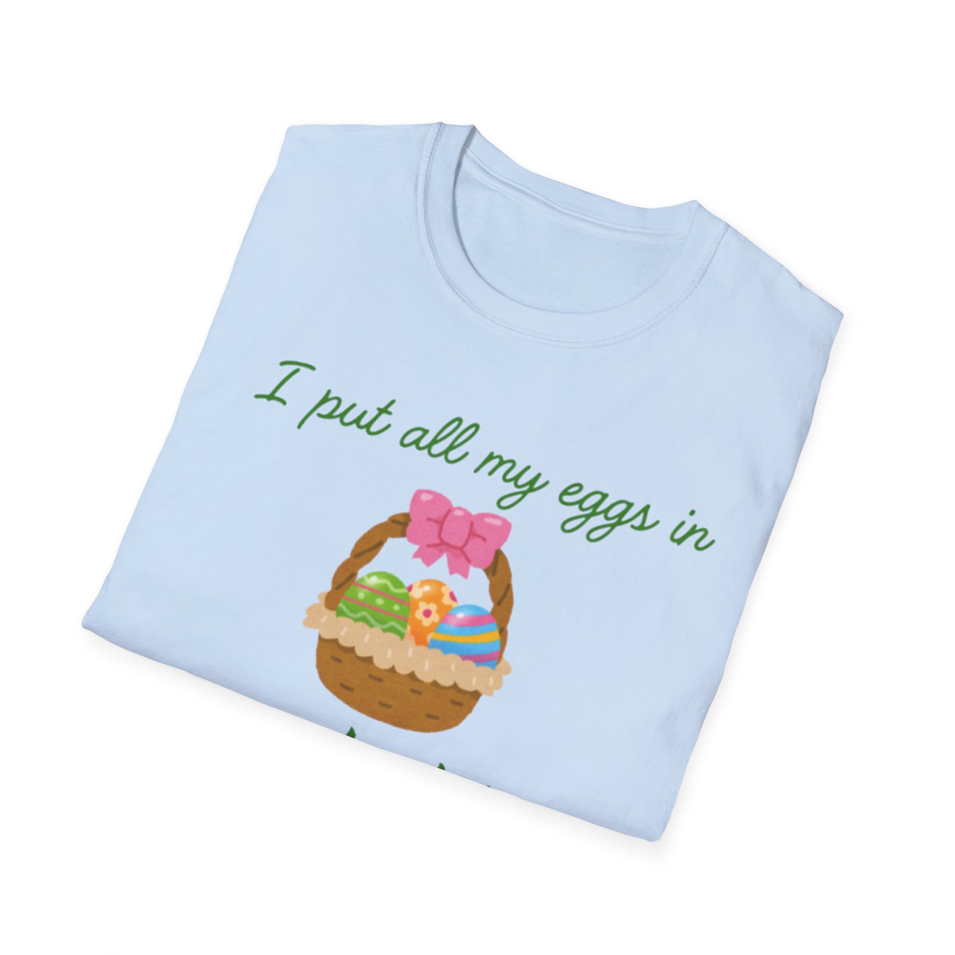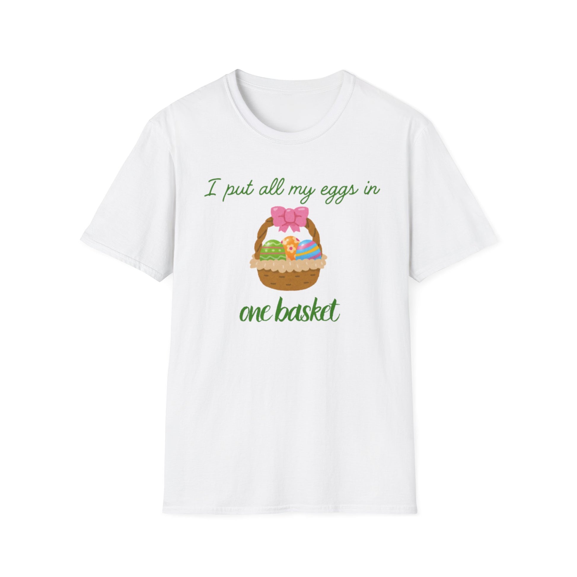 Cute Easter Joke T-Shirt - "I Put All My Eggs in One Basket" Design