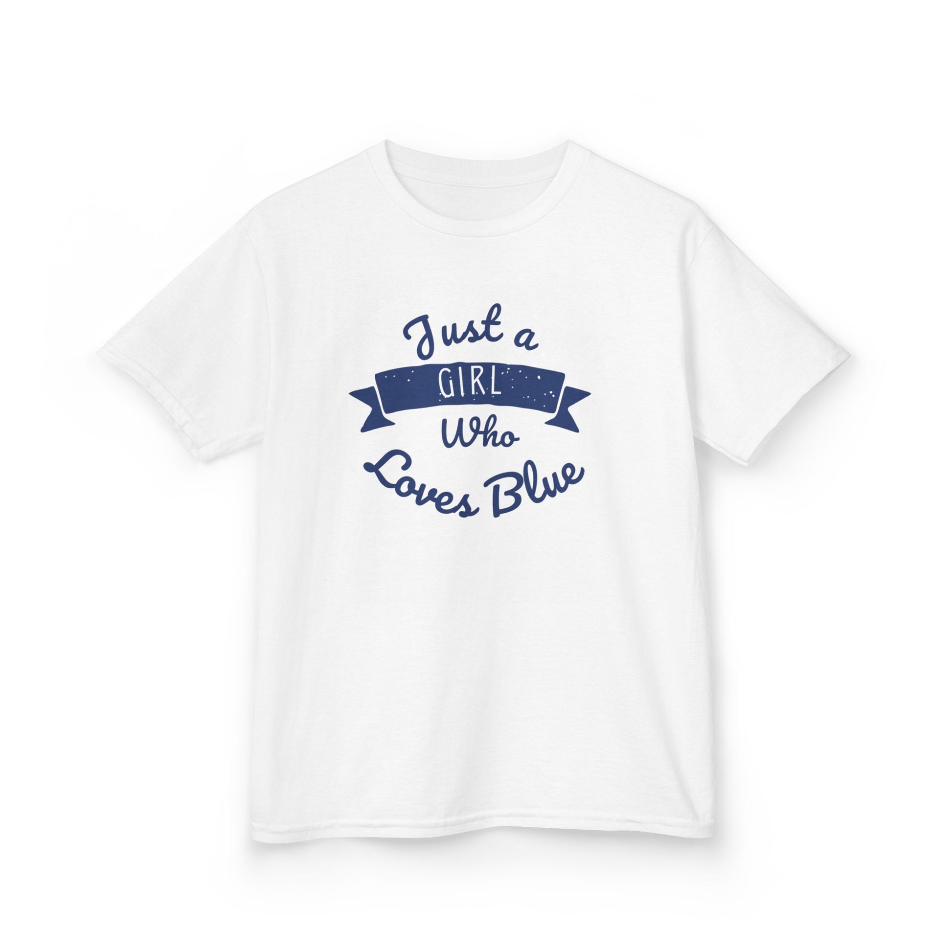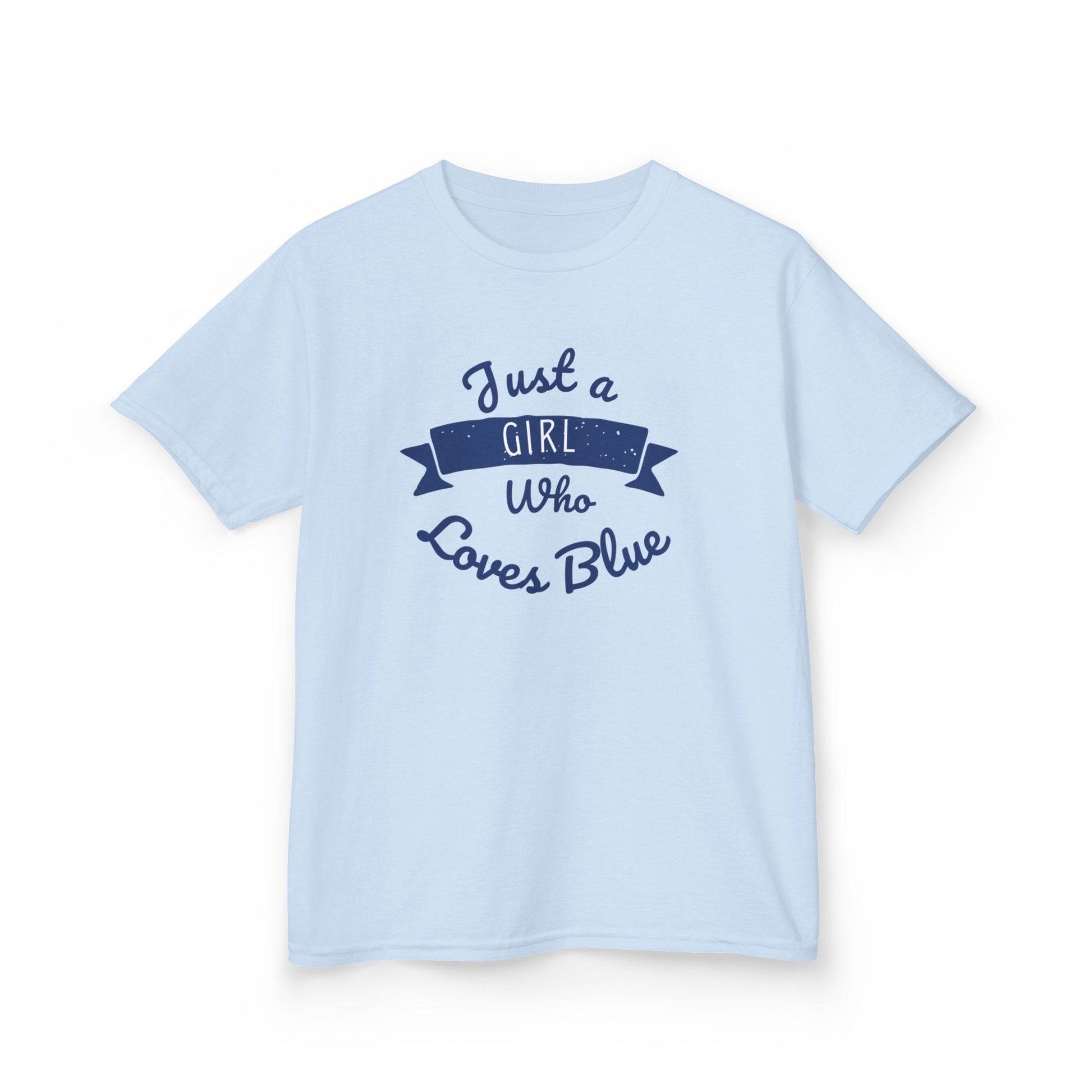 Just a Girl Who Loves Blue Kids Heavy Cotton Tee - Cute Comfortable T-Shirt for Young Girls
