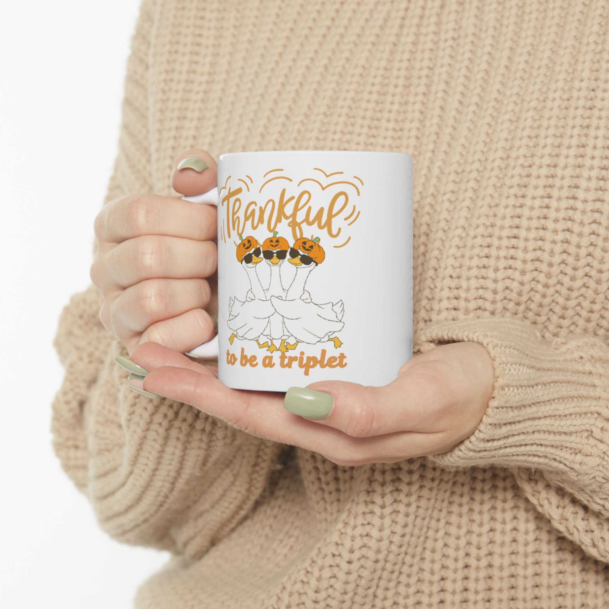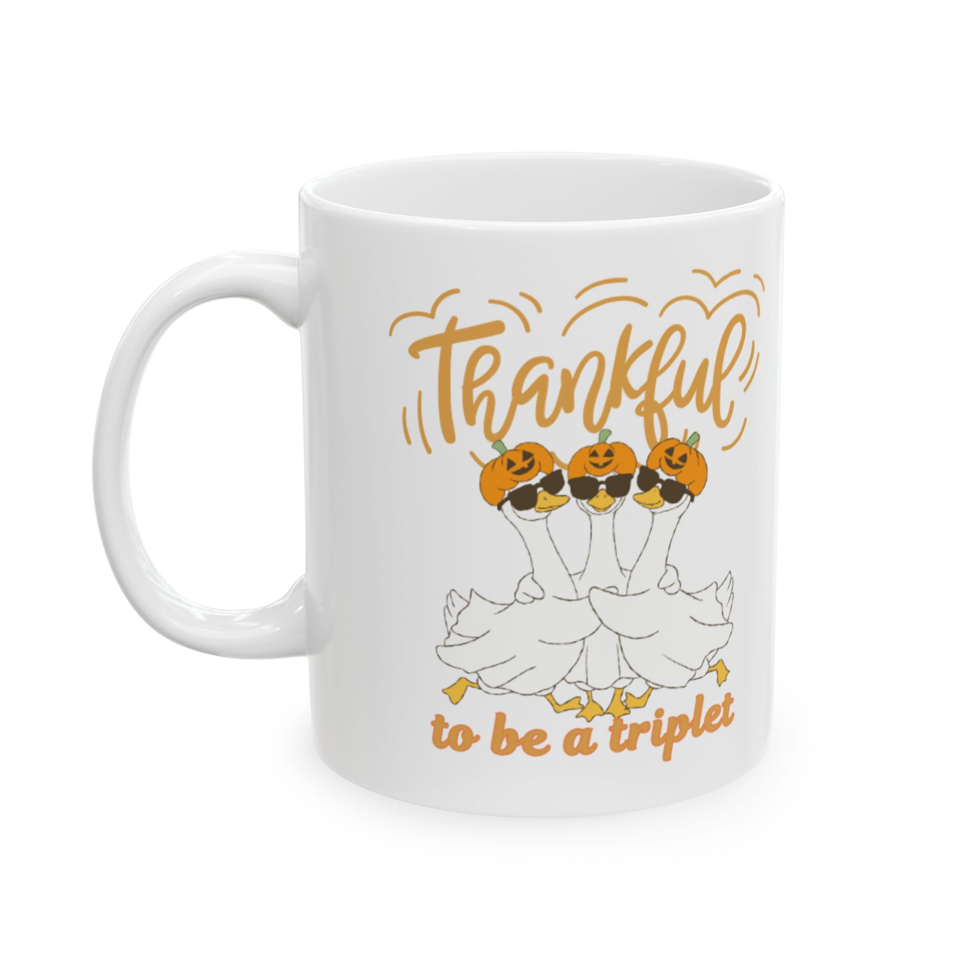 Thankful Duck Ceramic Mug — Thankful to be a Triplet Thanksgiving Triplet Sibling Gift