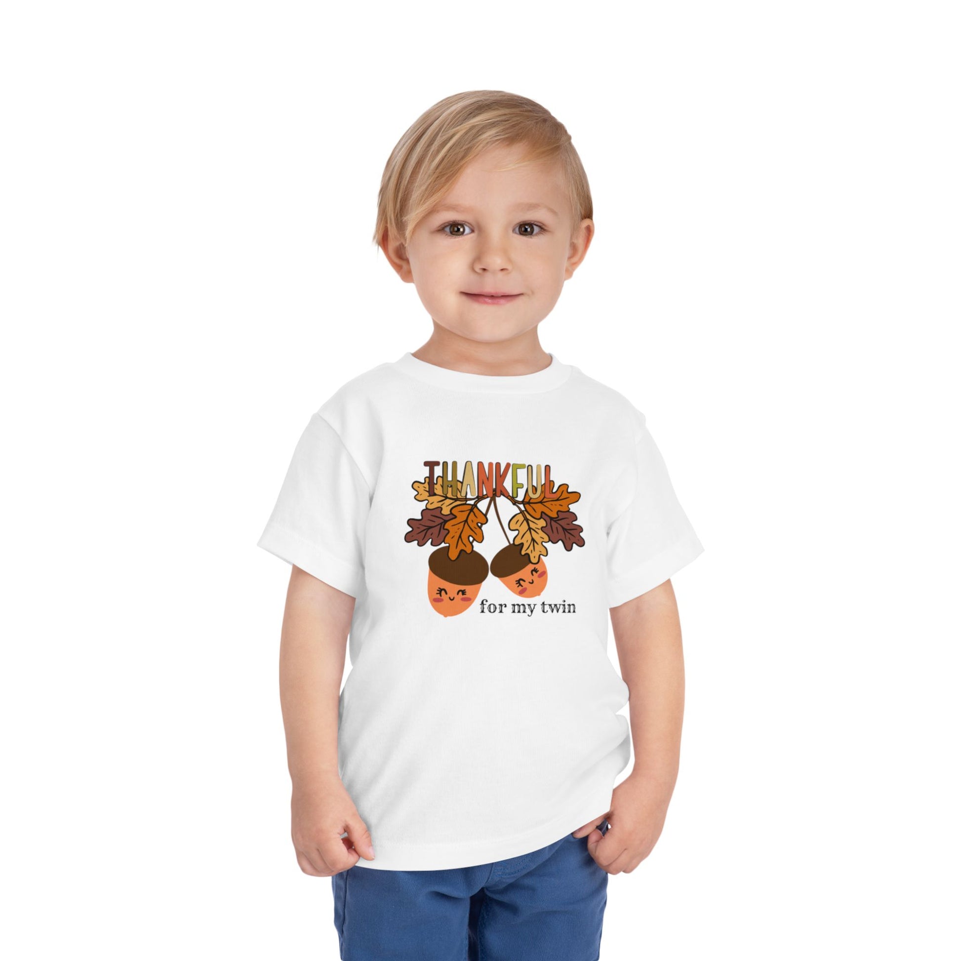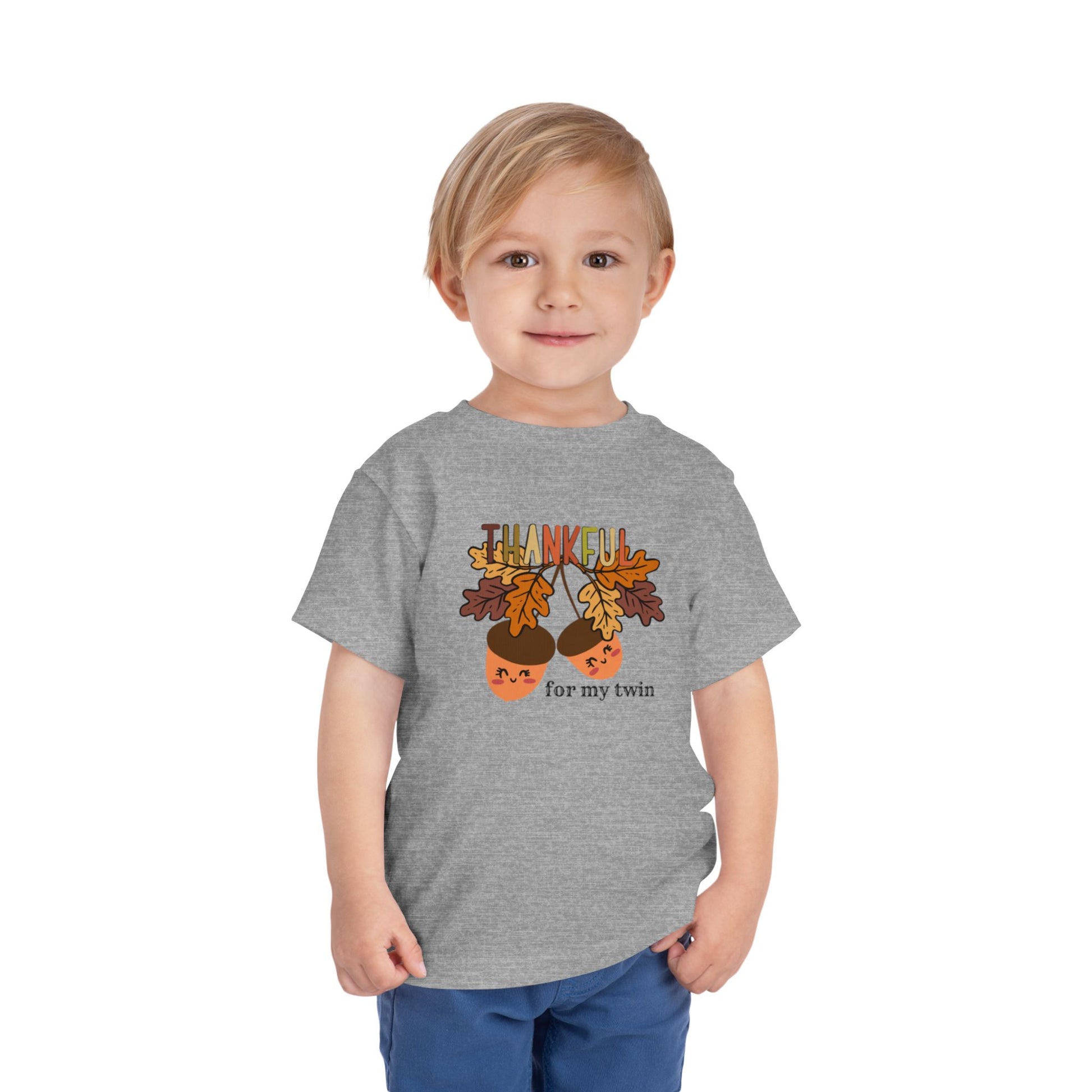 Thankful for My Twin Toddler Tee — Fall Acorn & Leaves Thanksgiving Shirt