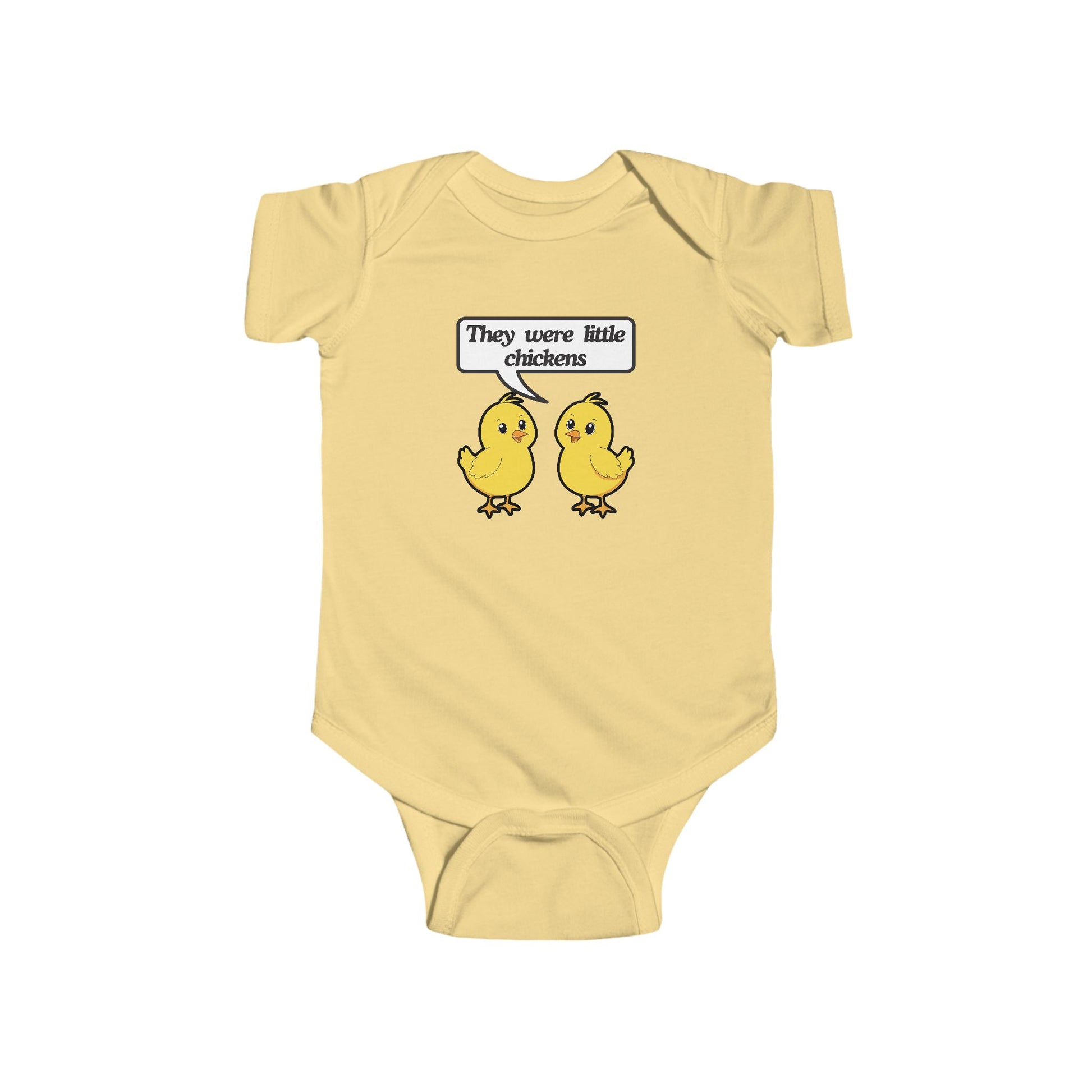 Soft, lightweight infant bodysuit with a playful chick illustration that brings a gentle laugh. Short sleeves and an envelope neckline make dressing quick and fuss-free. Breathable combed ringspun cotton keeps tiny skin comfortable, while ribbed binding at the neck and side seams help the shape hold through washes. Snaps at the crotch make diaper changes fast. This onesie feels like a cozy, everyday layer for quiet mornings, family photos, or relaxed visits with close friends — a small, silly touch parents and caregivers will smile at every time they see it.