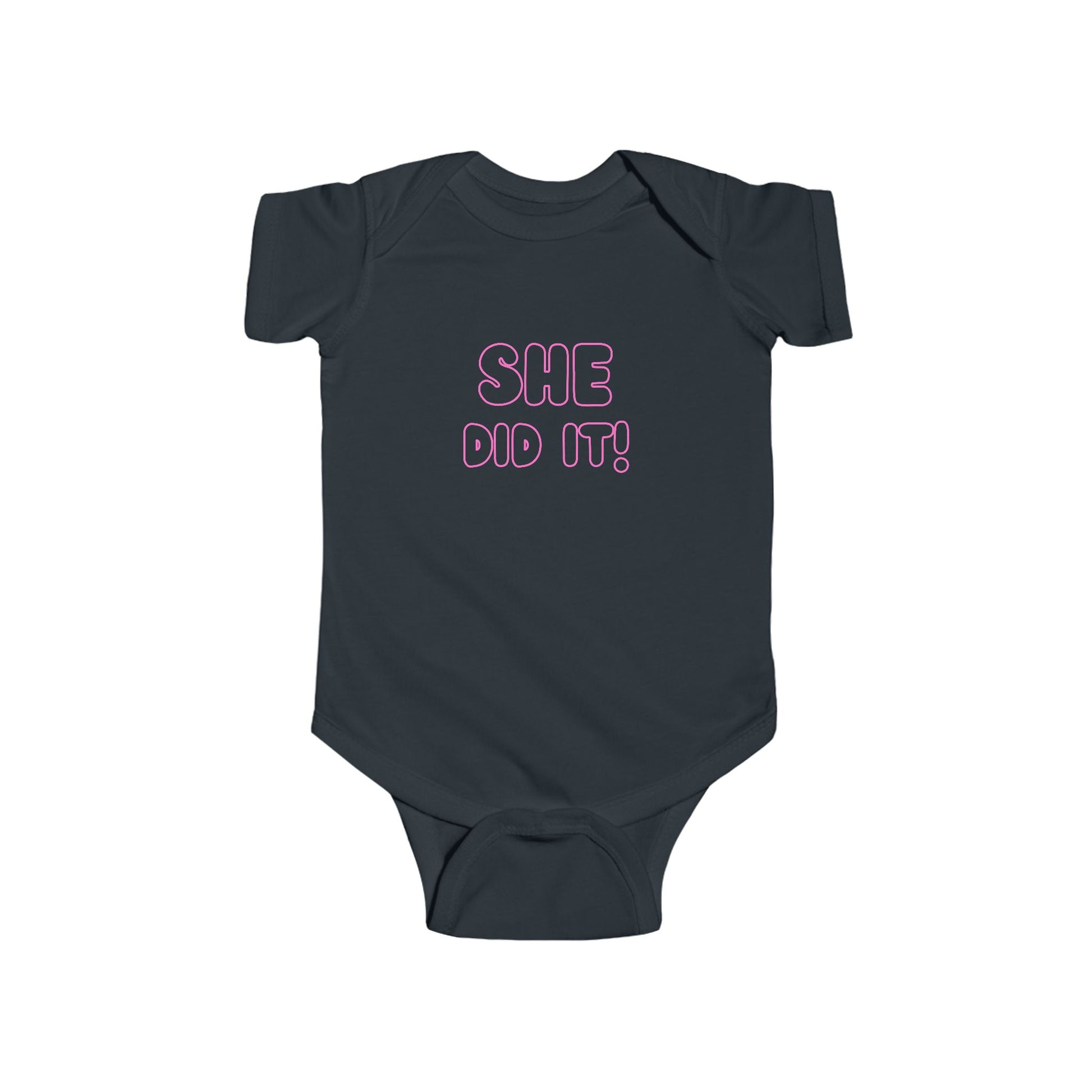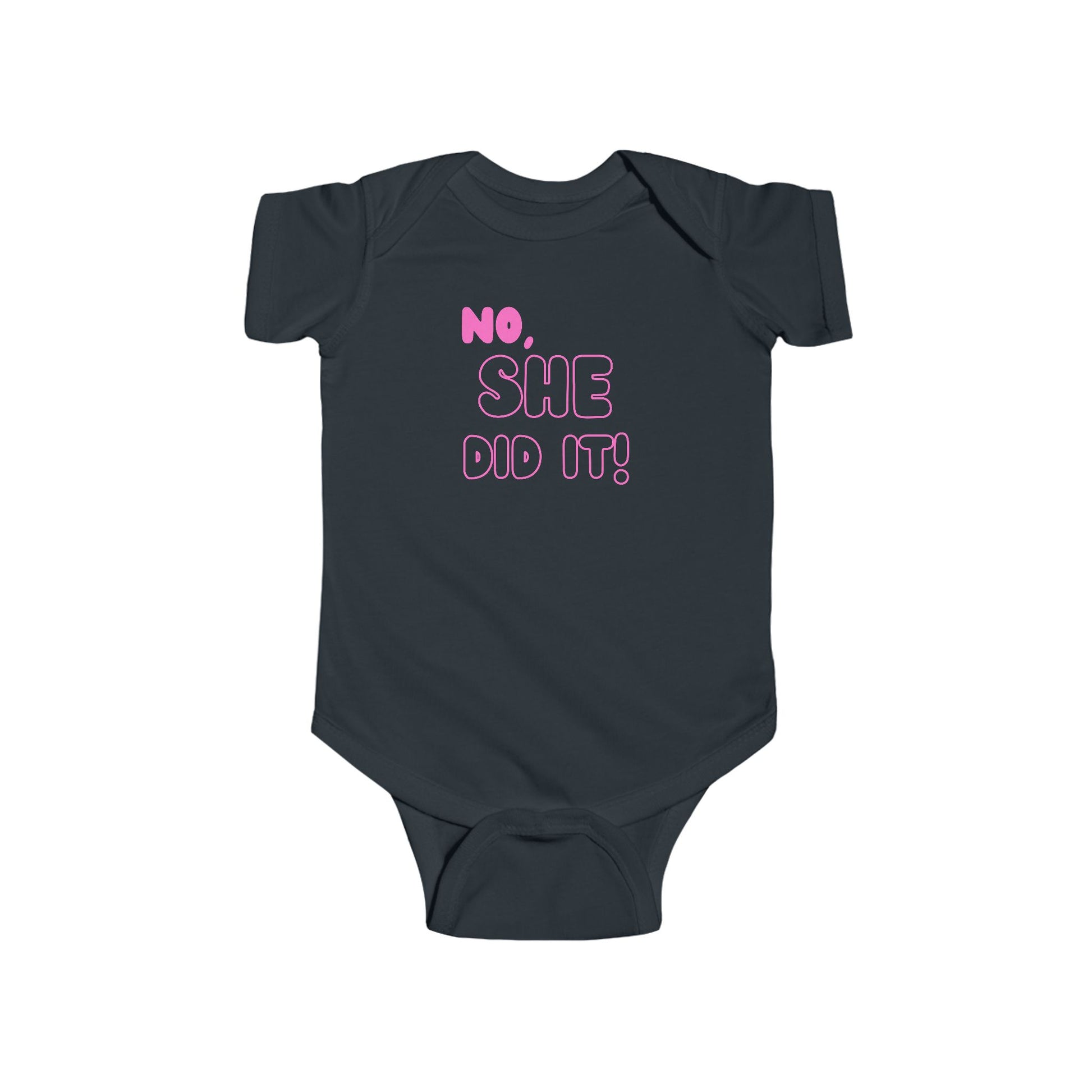 Twin Girls matching bodysuits. This set contains two bodysuits which read: She did it! No, She did it! Simply select the sizes and enjoy.