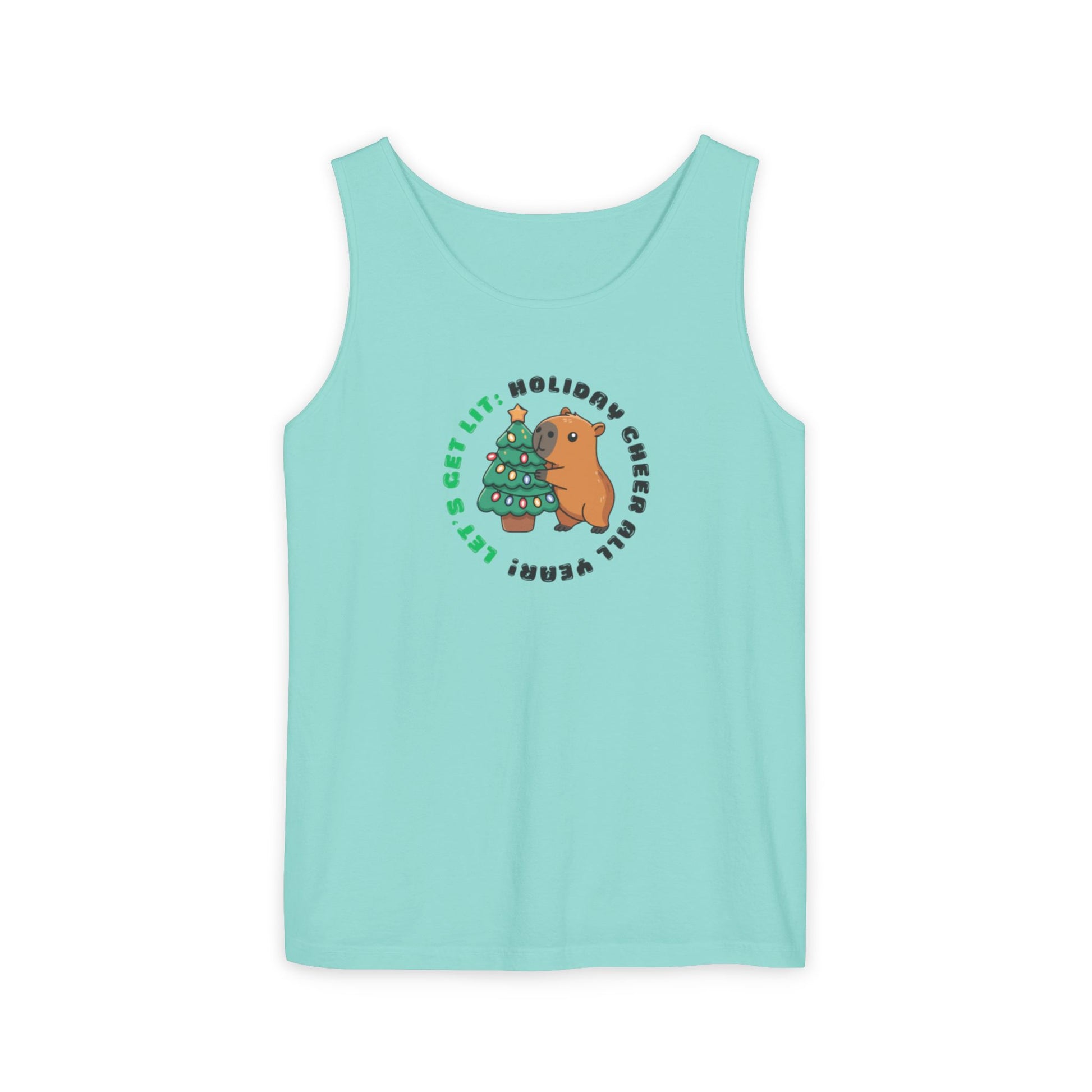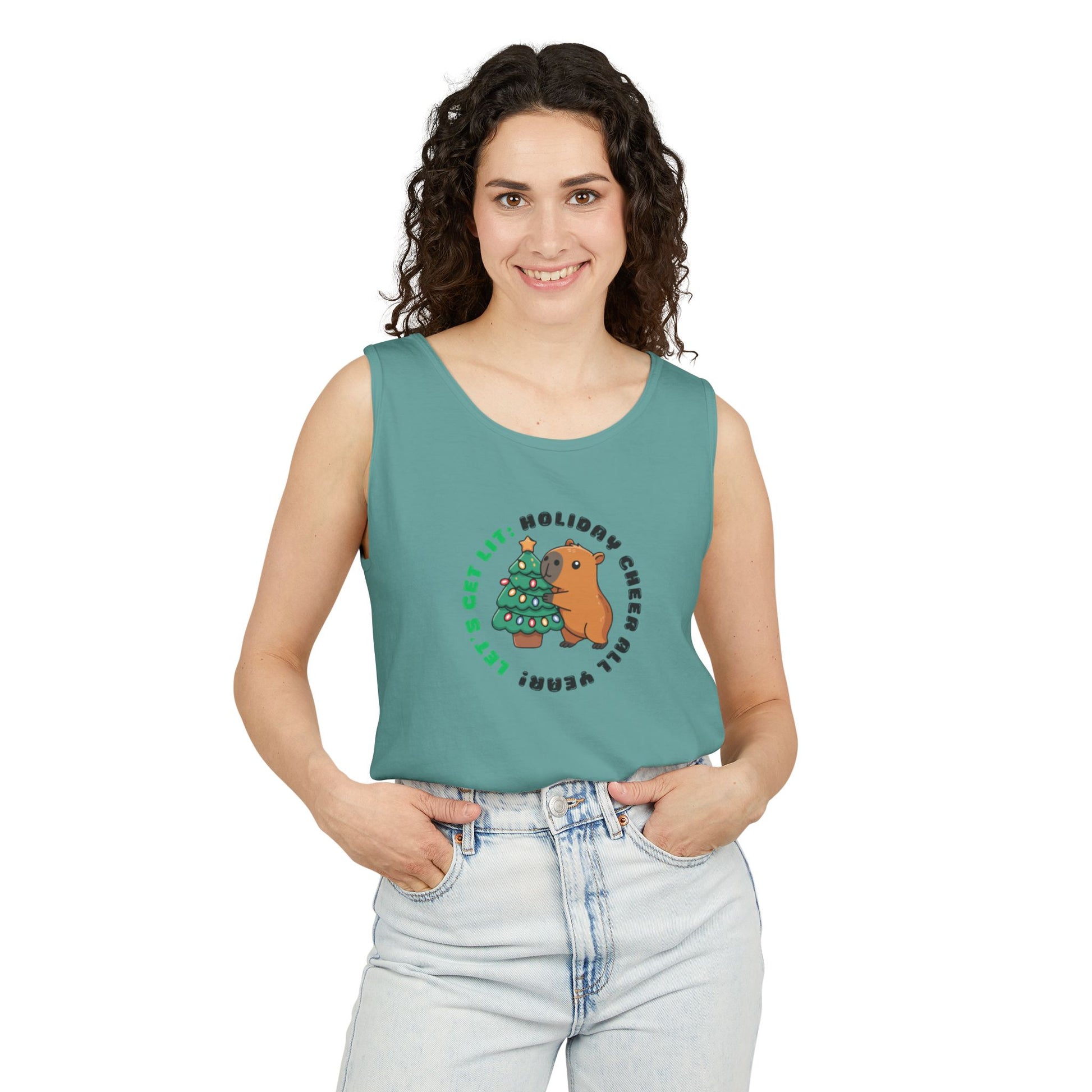 Unisex Holiday Cheer Tank Top — "Get Lit" Christmas Tree & Capybara Graphic