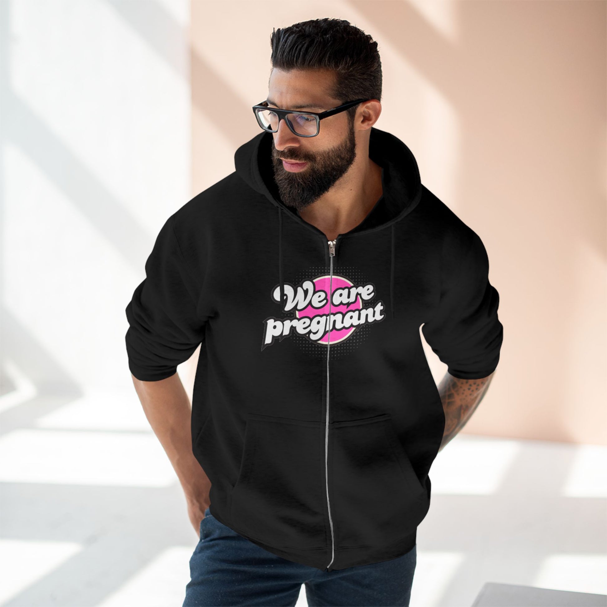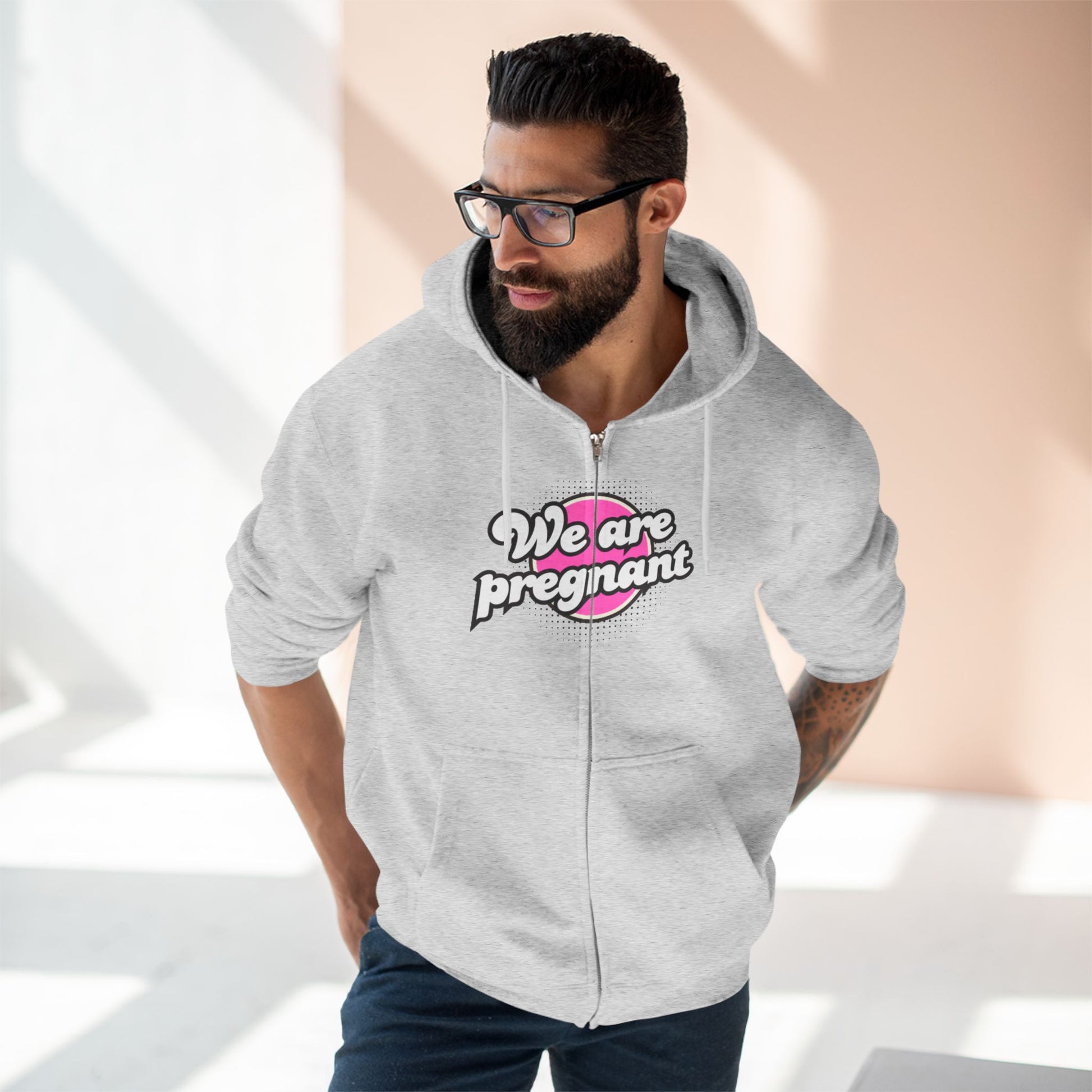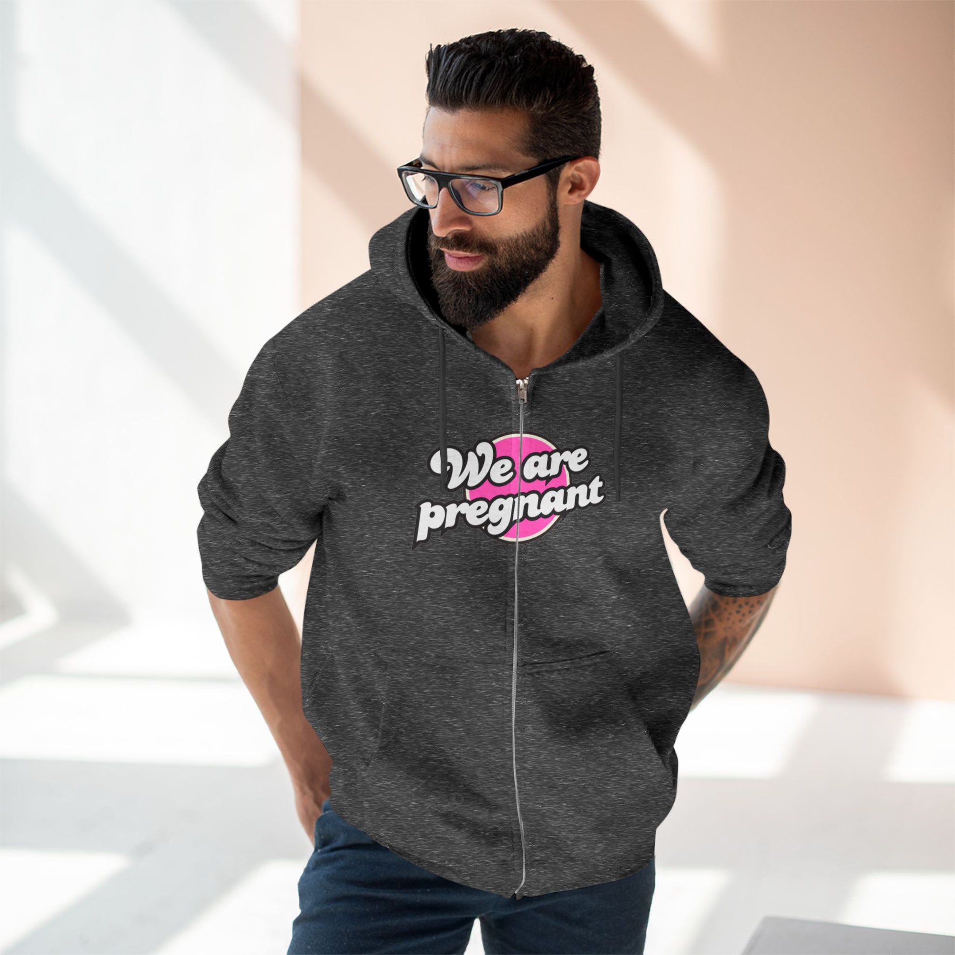 We Are Pregnant - Pink Unisex Zip Hoodie, Pregnancy Gift, Maternity Style, Expecting Parent Apparel, Baby Announcement Clothing